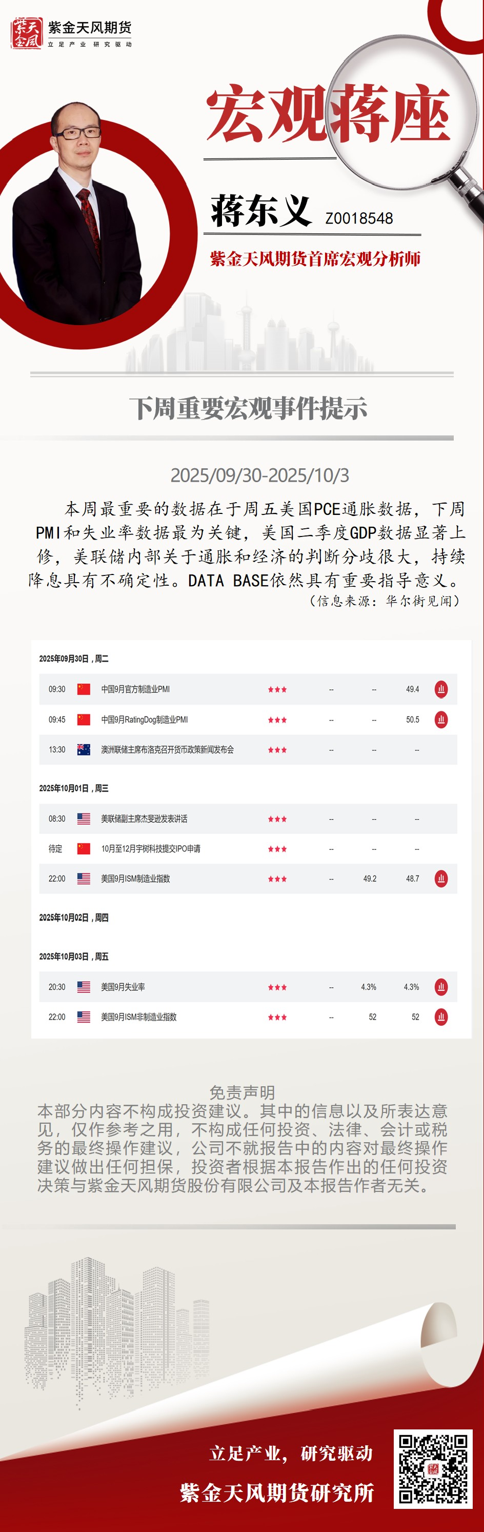 【20250926】【宏观蒋座】下周重要宏观事件提示